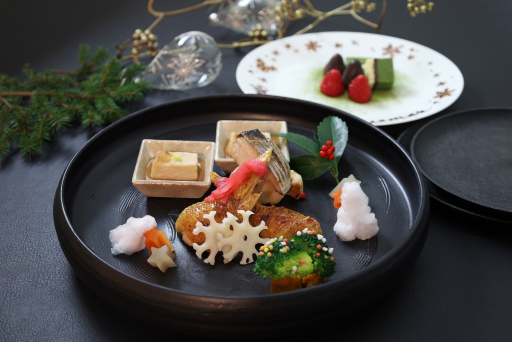 スペシャル仕様の焼き物八寸として、比内地鶏の山椒焼きとサワラの幽庵焼きの盛り合わせを加え、